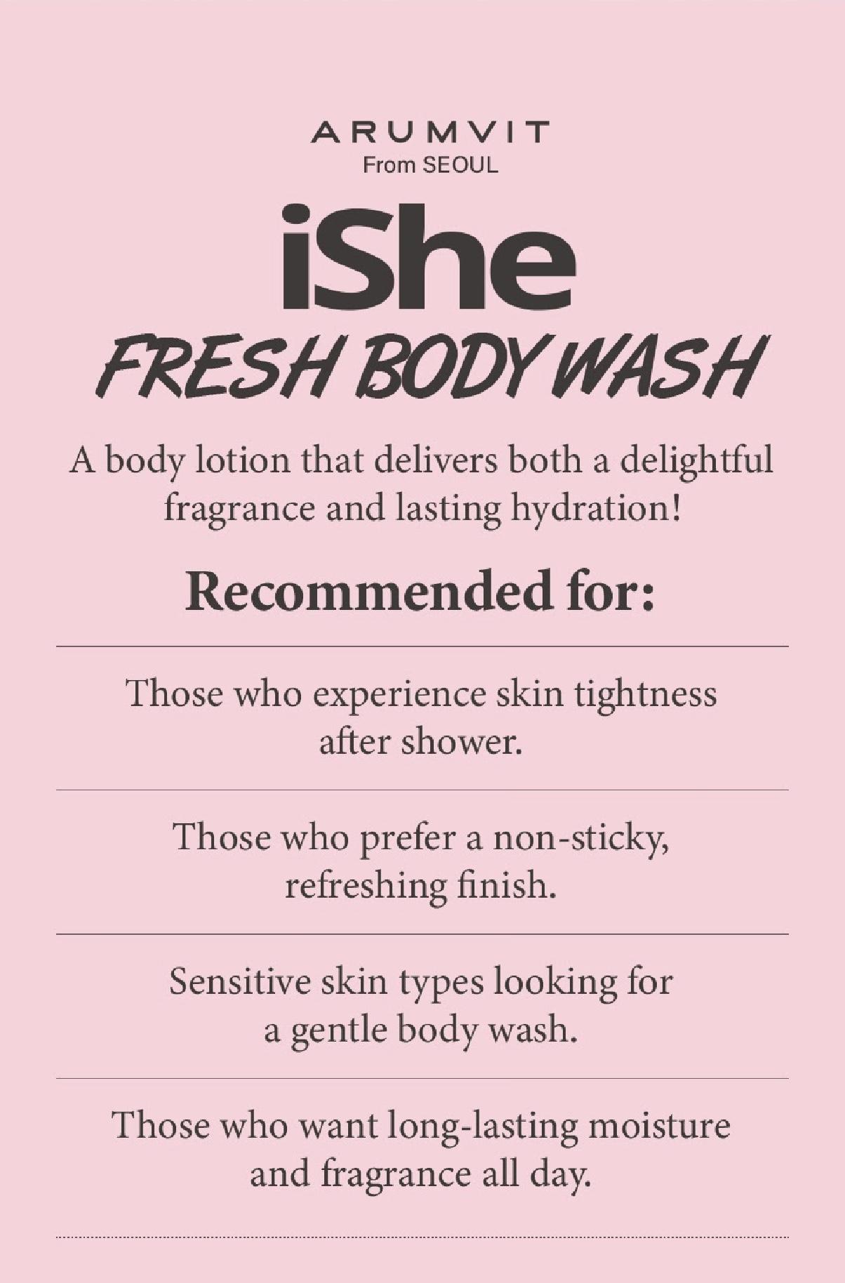 - iShe Fresh Body Wash is designed with a gentle cleansing formula. It is perfect for maintaining soft and smooth skin. The 100ml size ensures you have enough for regular use.
