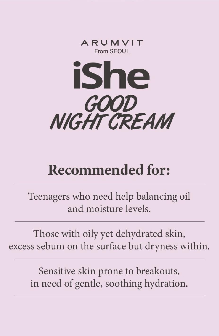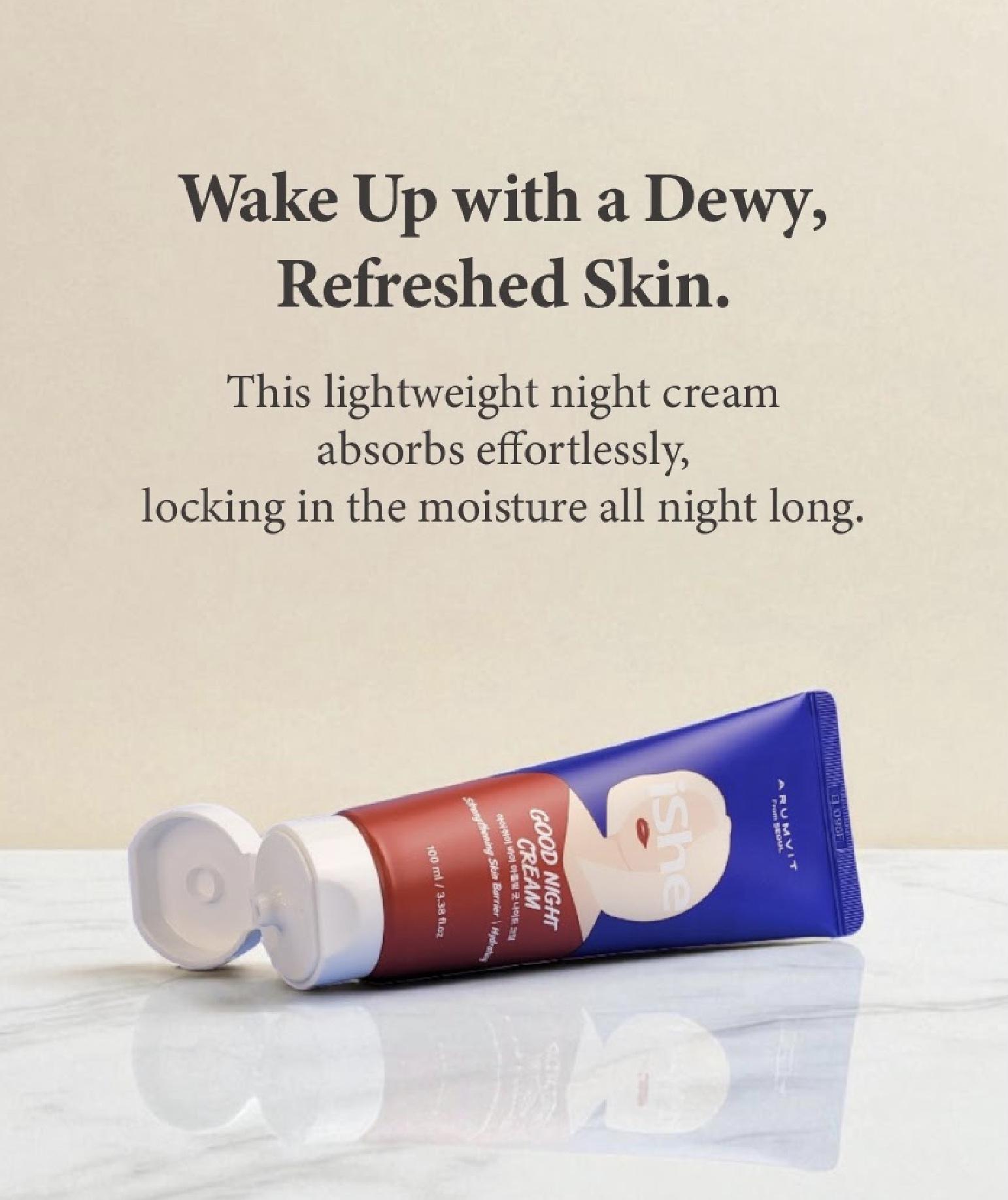 iShe Good Night Facial Cream - Hydrating Skin Barrier Strengthening Cream for Night Use 100mL