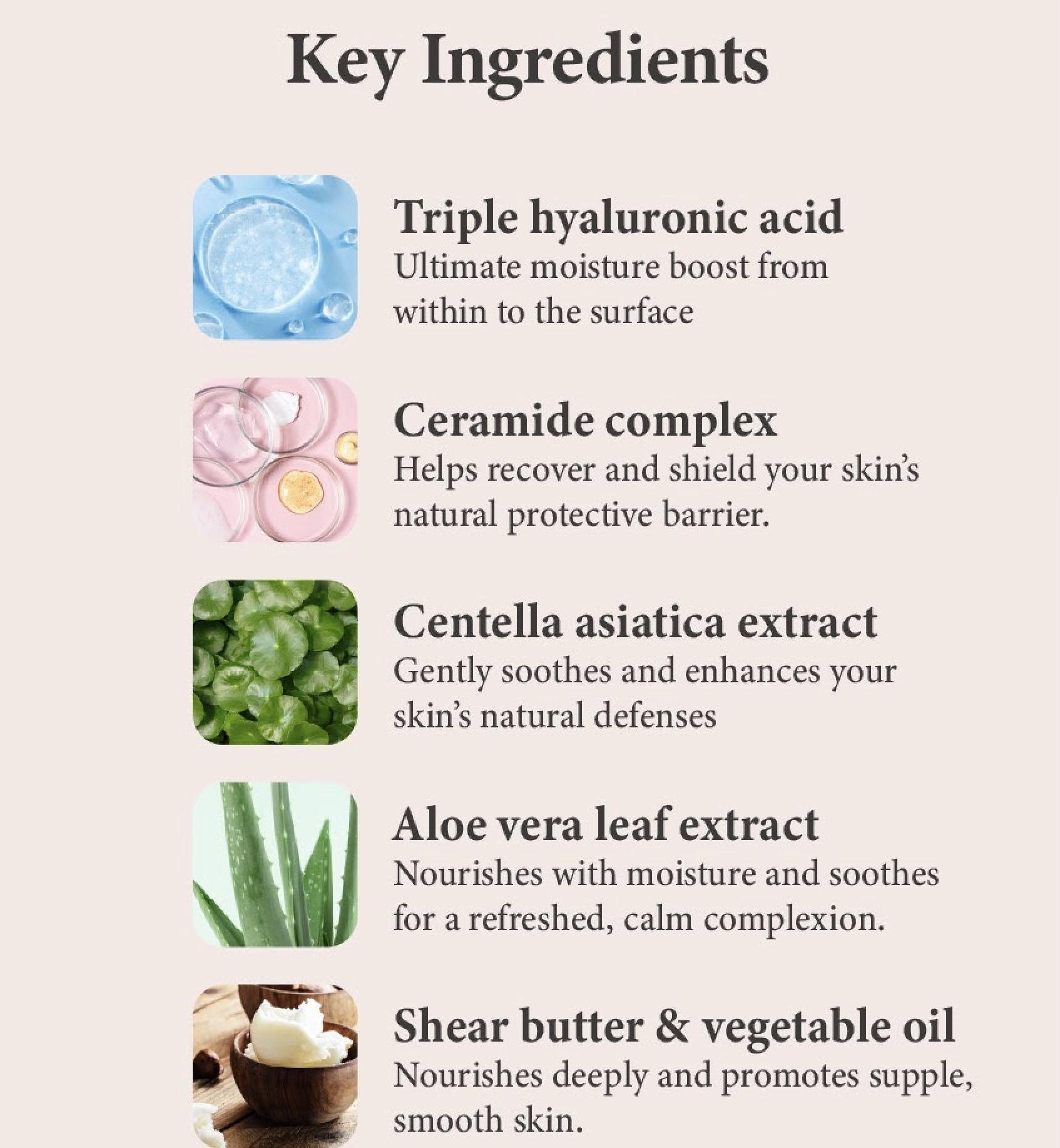 - Purpose: Hydrating and strengthening skin barrier